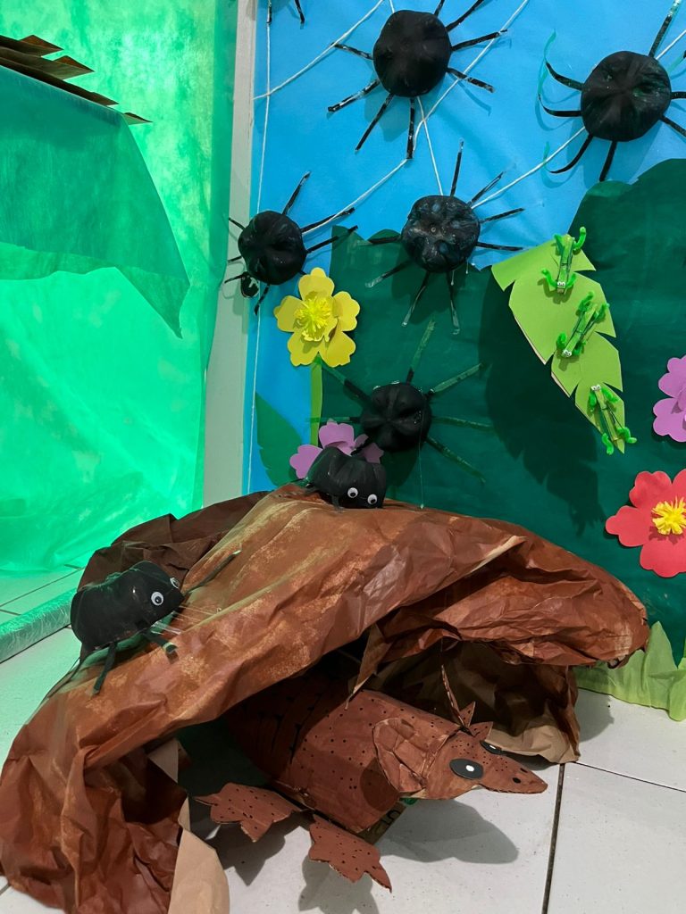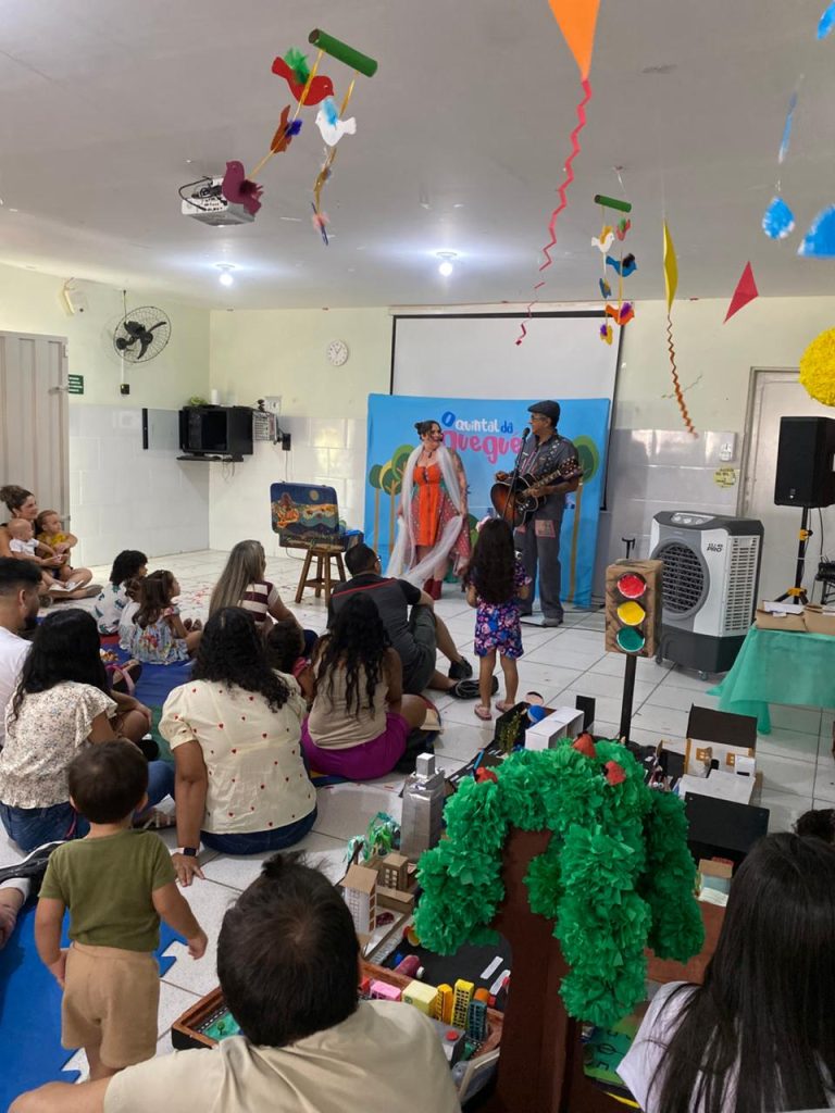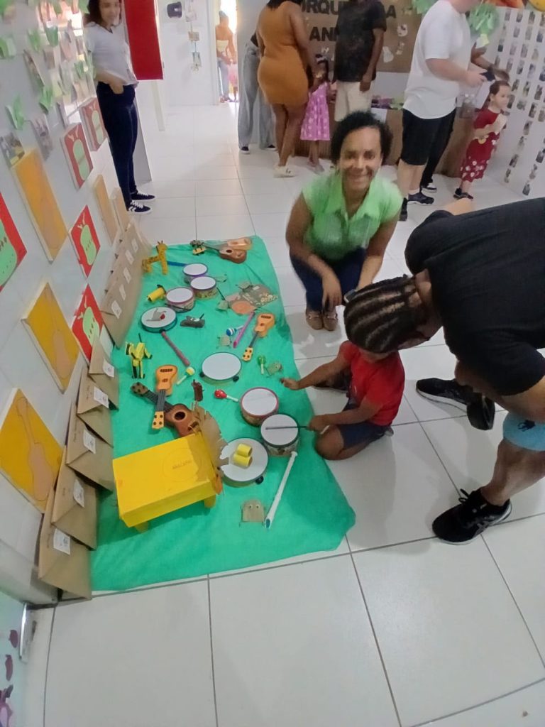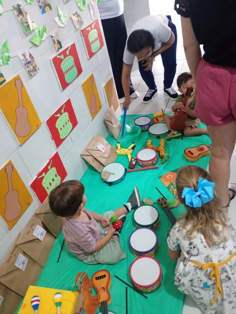 Também contamos com a participação especial do o quintal da guegué, trazendo música e sensibilidade à manhã. A apresentação encantou as crianças, proporcionando uma experiência rica em sons e ritmos que complementaram as histórias exploradas ao longo do evento.